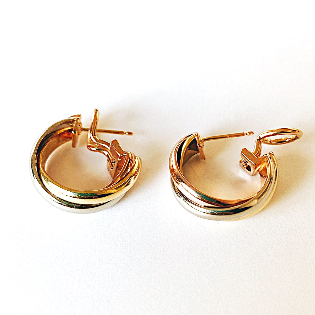 K18素材のCartierカルティエ トリニティーイヤリングをピアスに加工致しました。