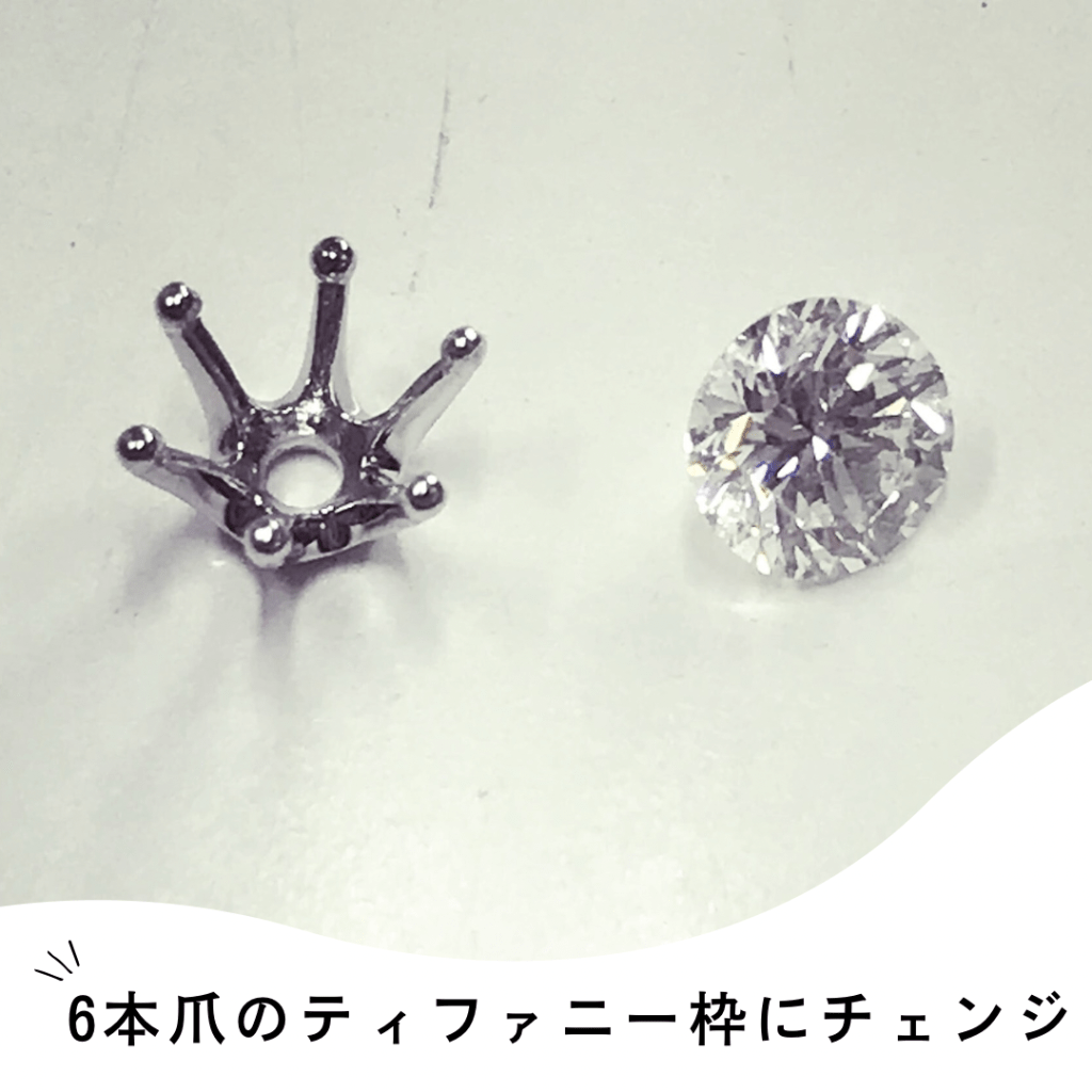 プラチナとダイヤモンド0.5ctのフクリン枠のネックレスを、上品なティファニー爪の枠に取り替えたリフォーム。