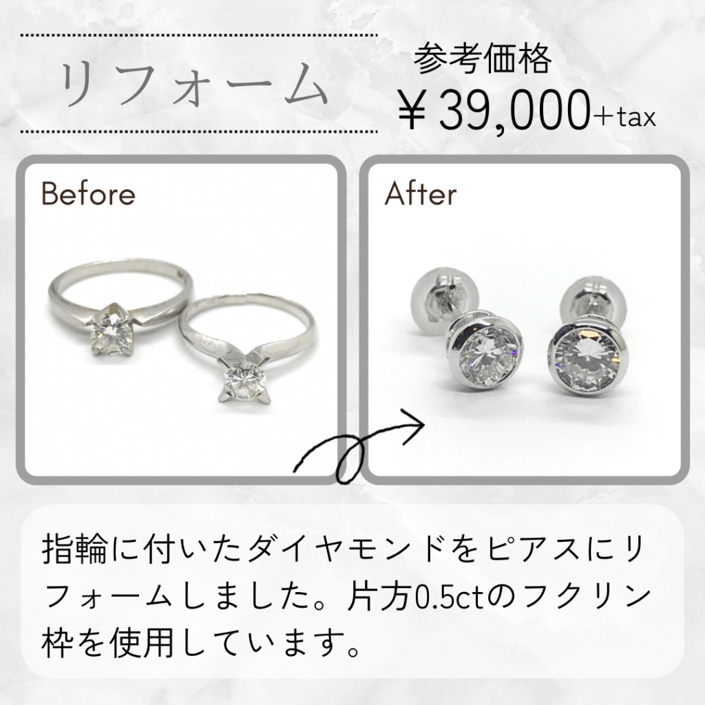 昔のデザインのダイヤモンドリングをピアスにリフォームしました。