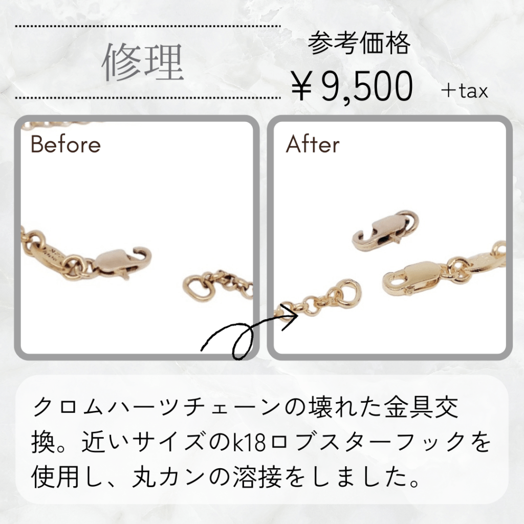 クロムハーツk22ゴールドチェーンの壊れた金具の交換修理