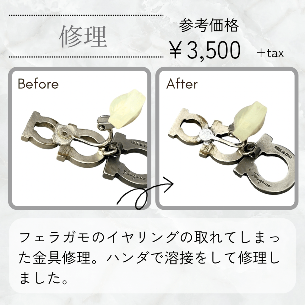 ブランドアクセサリーの金属は配合がさまざまな為、稀にハンダ溶接がつかない場合がございます。