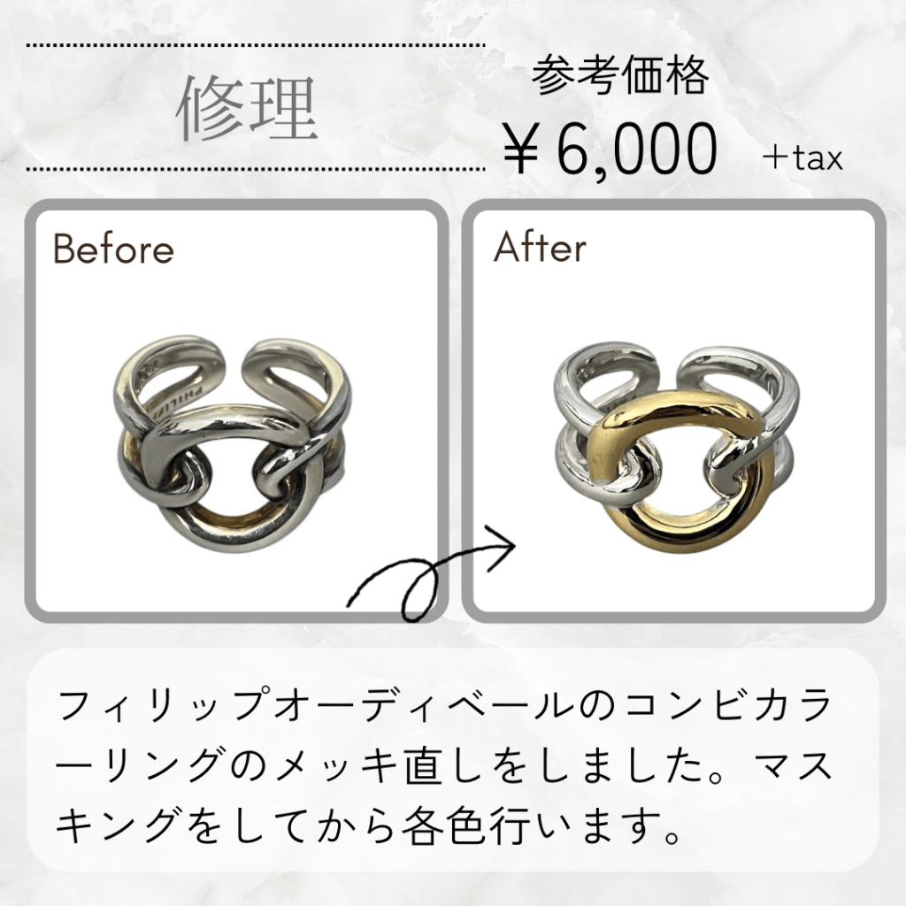 フィリップオーディベールのシルバーとゴールドのコンビカラーの指輪のメッキ直し。
