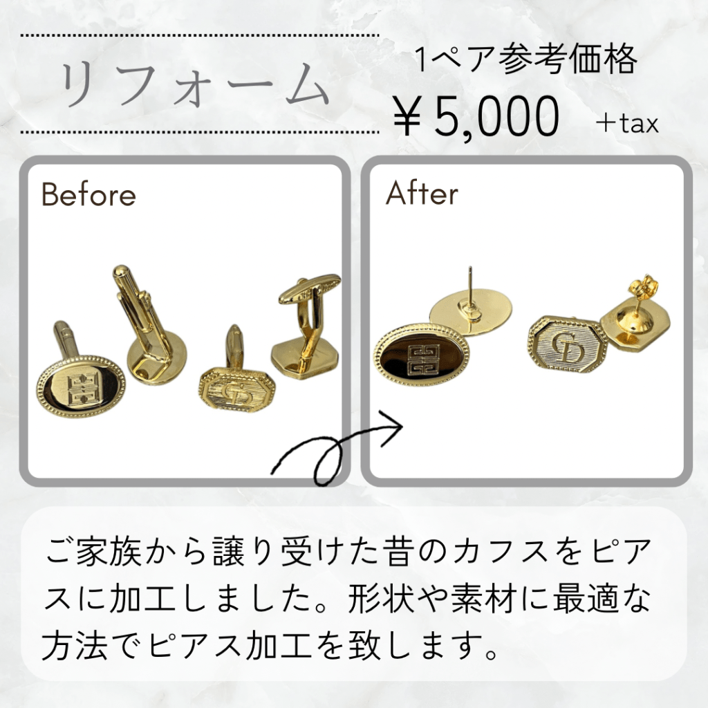 ご家族から譲り受けたカフスをピアスにリフォームしました。