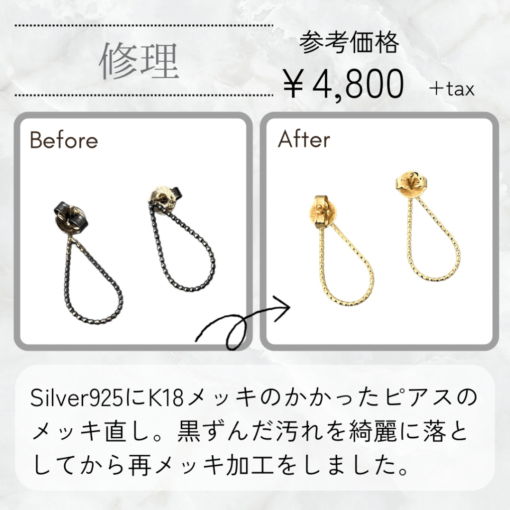 Silver925×K18GP(ゴールドメッキ)ピアスのメッキ直し。