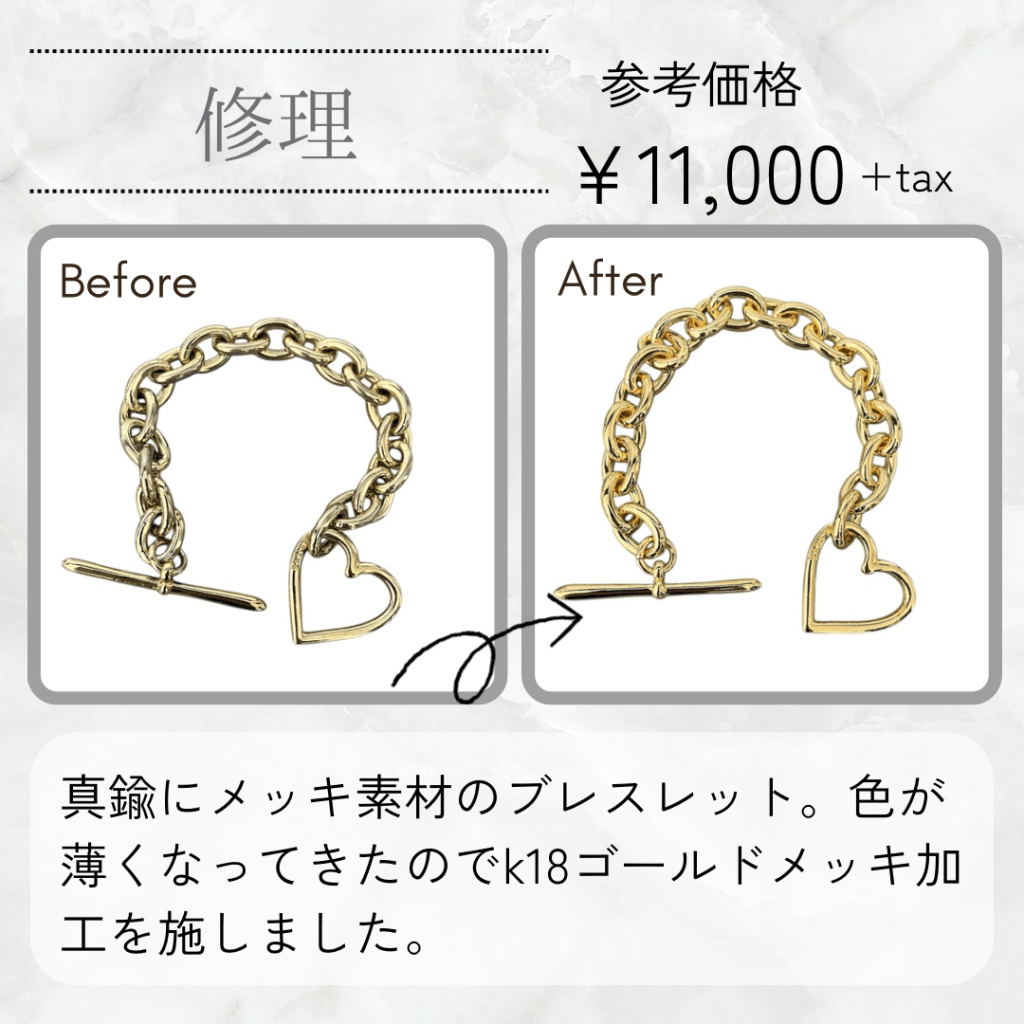 真鍮素材にメッキがかかったブレスレットのメッキ直し。