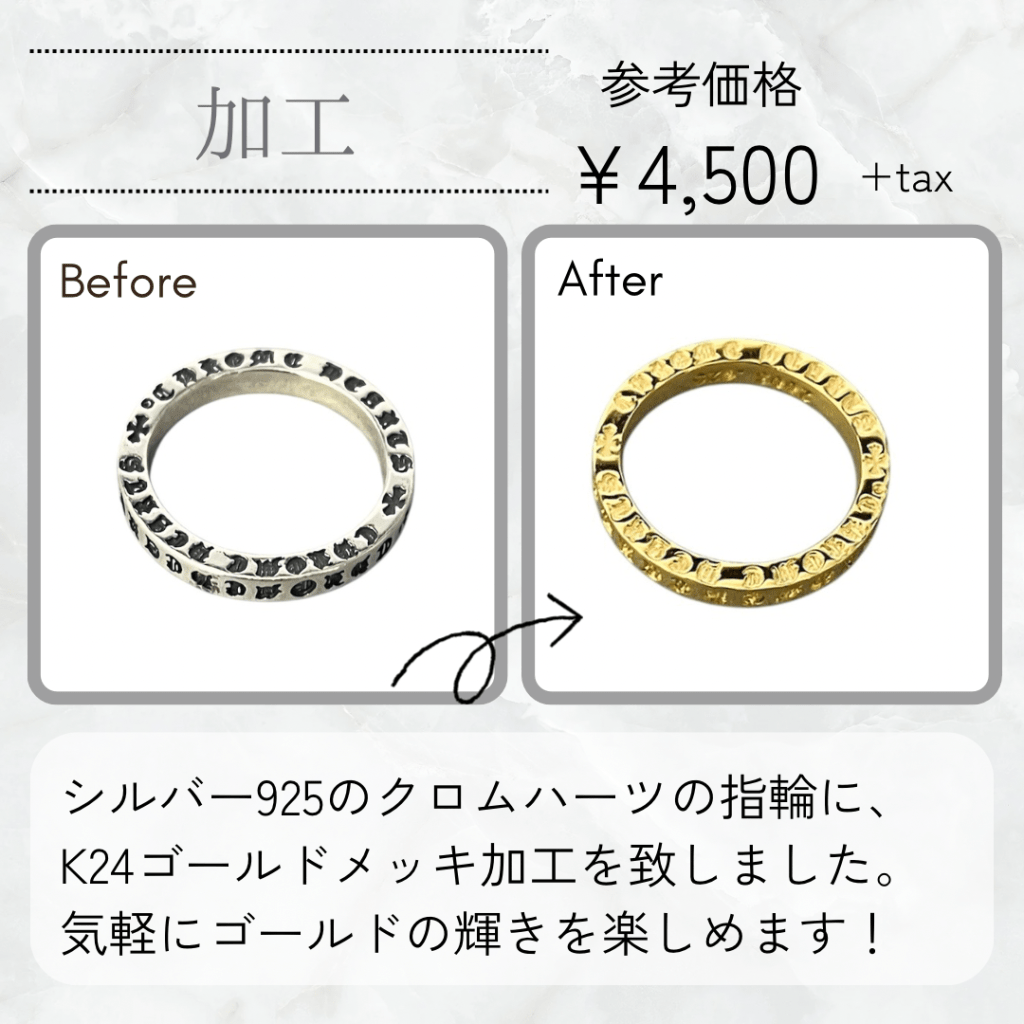 クロムハーツのシルバー925スペーサーリングにK24ゴールドメッキ加工を施しました。