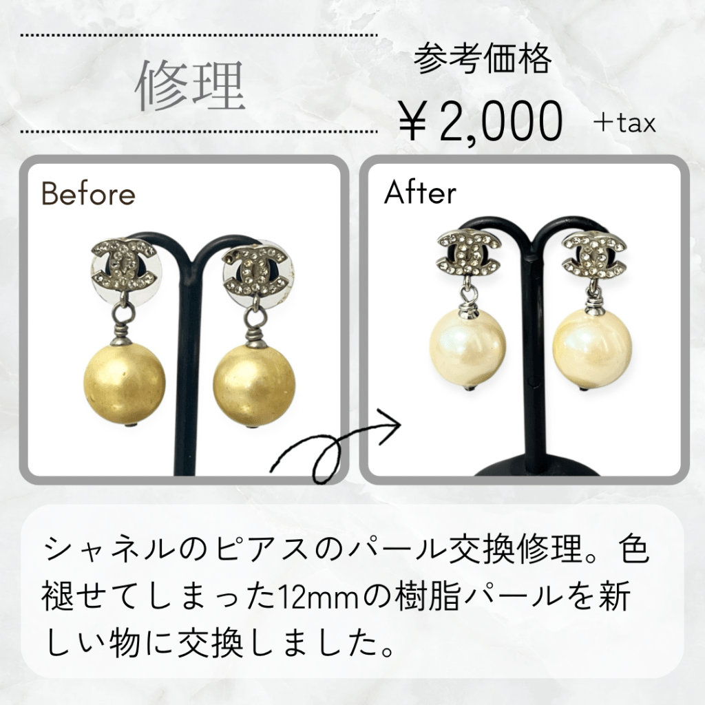同じ12mmサイズの新しい樹脂パールに交換致しました。