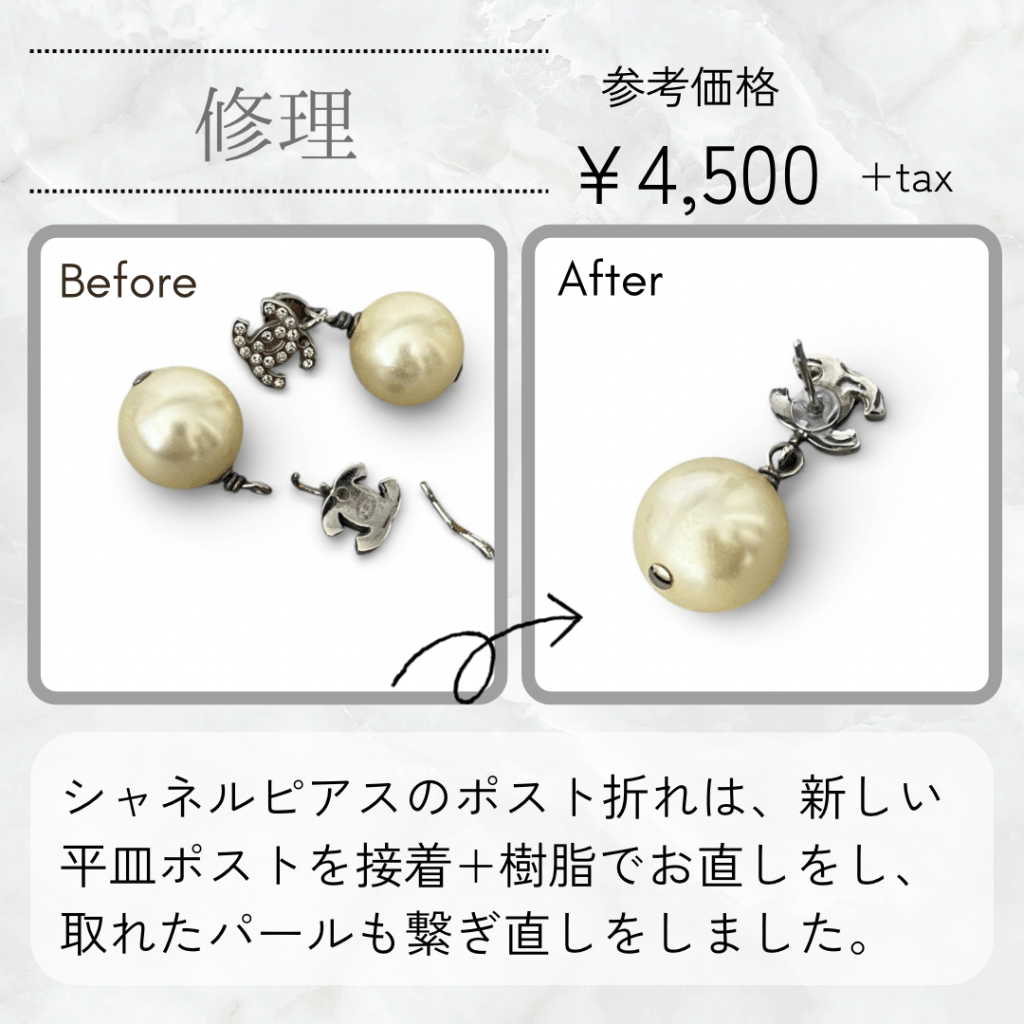 (内訳:ピアスポストの接着修理¥3,500/パールの取り付け¥1,000)