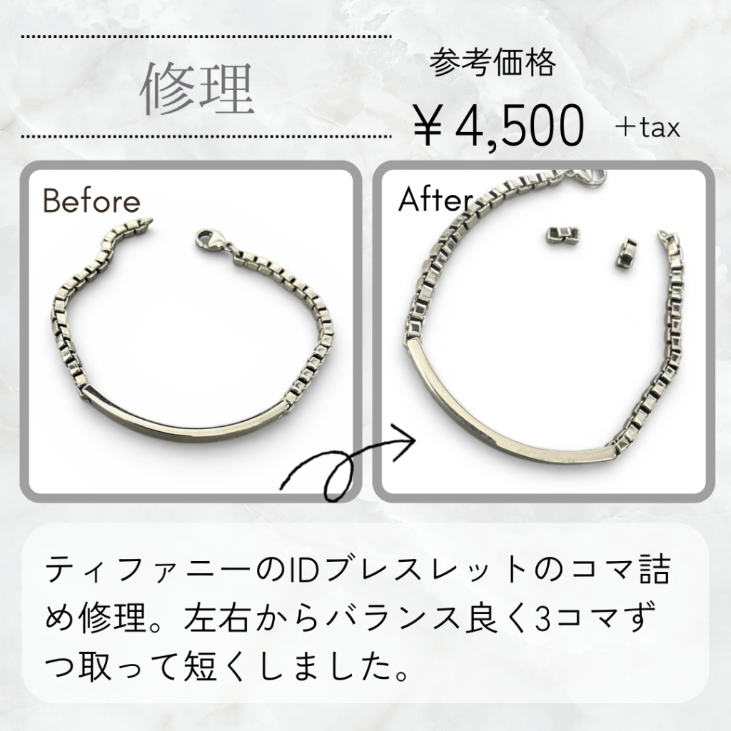 シルバー925のTIFFANYベネチアンリンクIDブレスレットを短くサイズダウンしました。