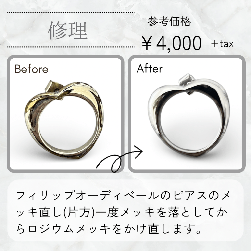 メッキを1度綺麗に磨いて落としてから、ロジウムメッキ加工をします。