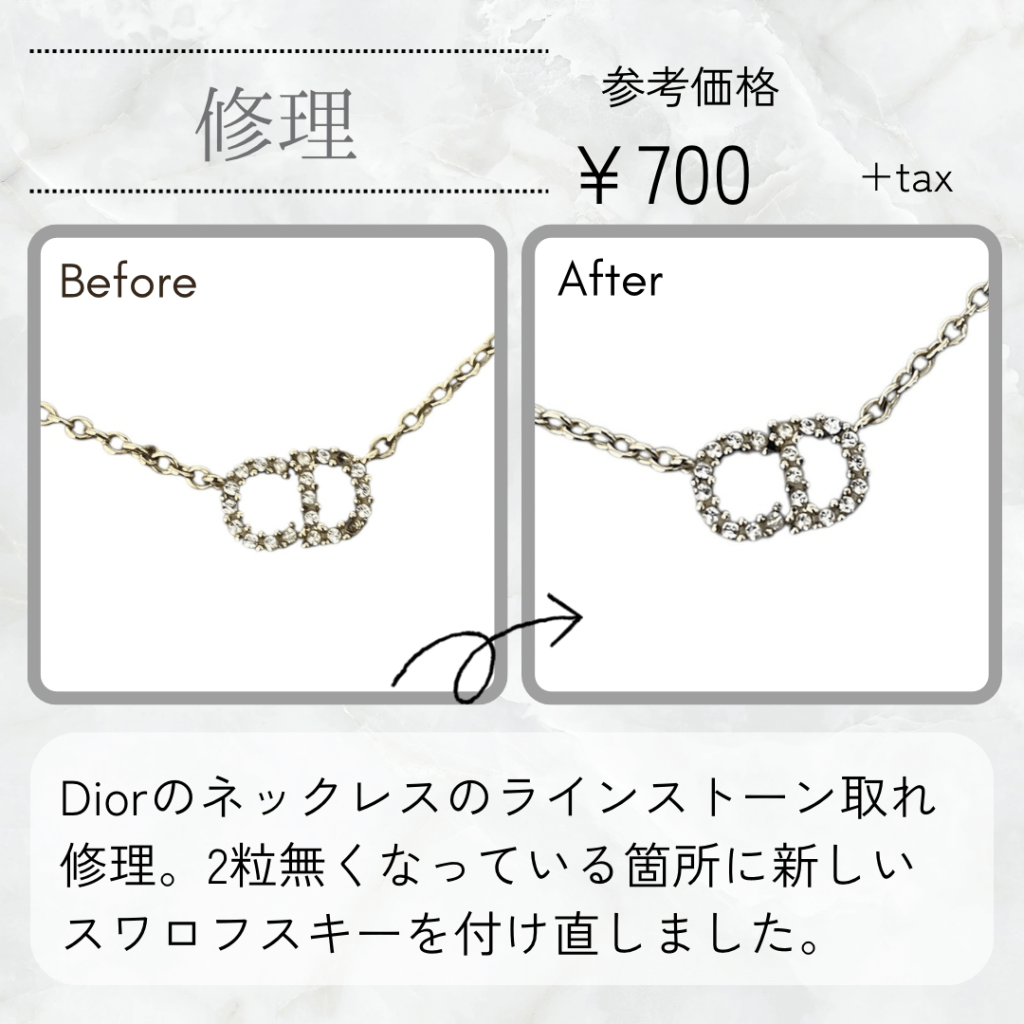 石が取れたDiorのラインストーンネックレス