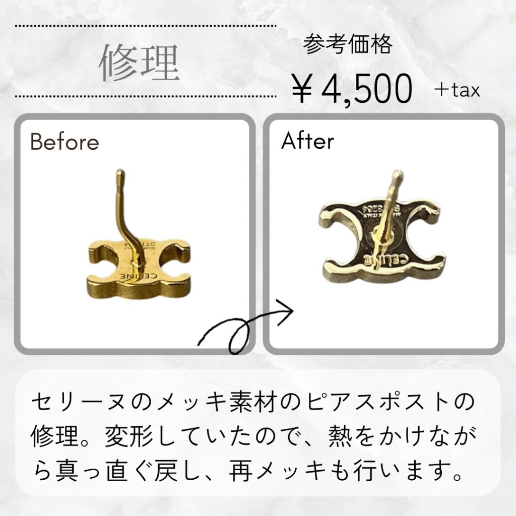 熱をかける際にメッキが剥がれてしまうので、金メッキ直しをして綺麗に元通りに蘇りました。