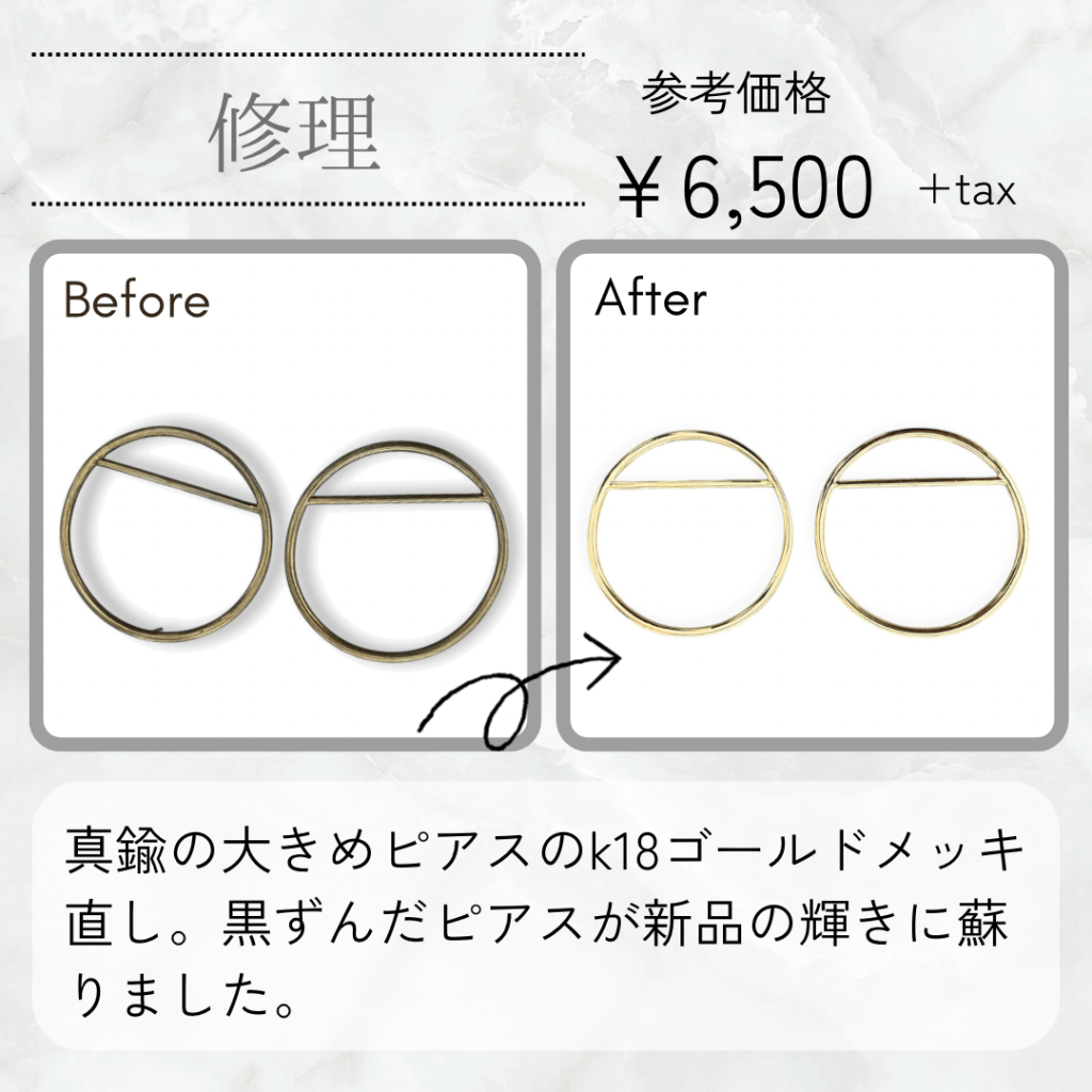 剥がれかけたメッキを1度綺麗に磨いて落としてから、K18ゴールドメッキ加工をします。