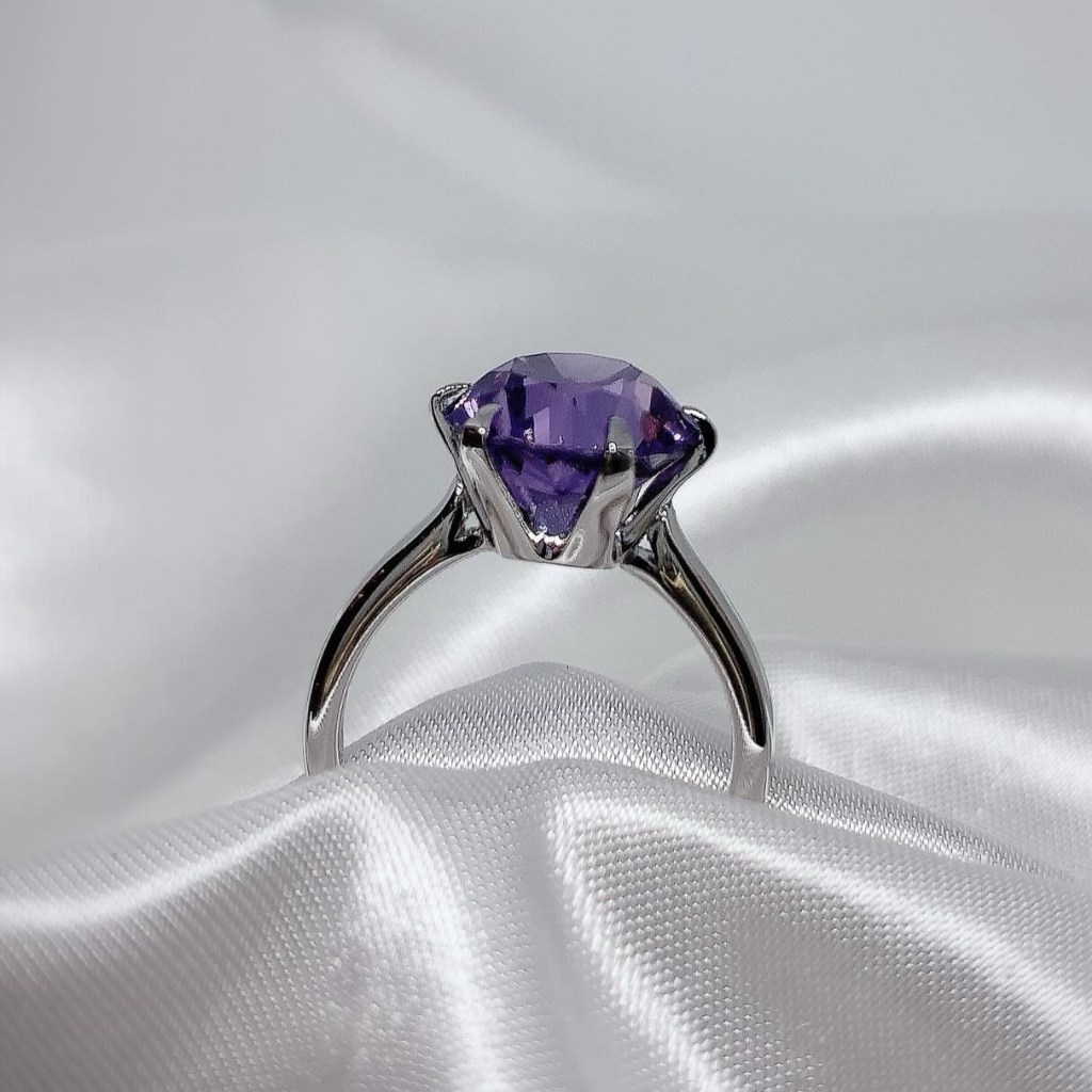 4本爪の枠に留め、シンプルでしっかりとしたプラチナの指輪に仕立てました。