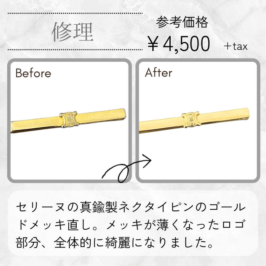 剥がれかけたメッキを1度綺麗に磨いて落としてから、K18ゴールドメッキ加工をします。