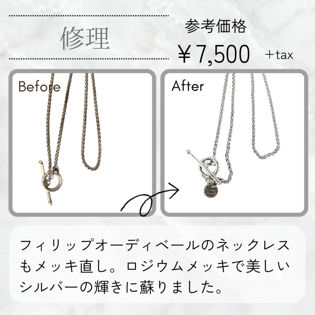 剥がれかけたメッキを1度綺麗に磨いて落としてから、ロジウムメッキ加工をします。