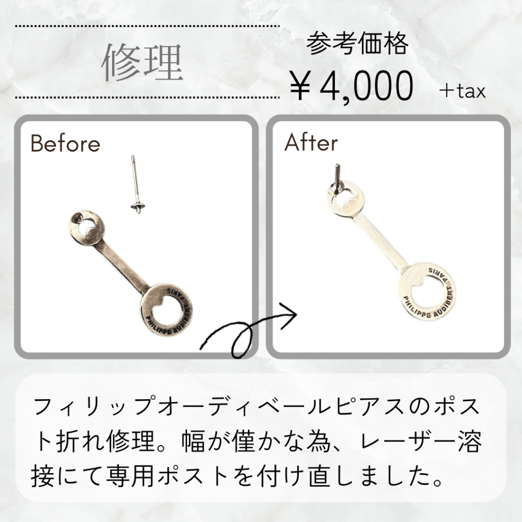 ポストが折れたフィリップオーディベールのピアス。