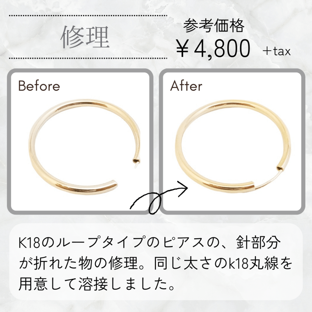 ポストが折れたシャネルピアスをハンダ溶接にて修理しました。