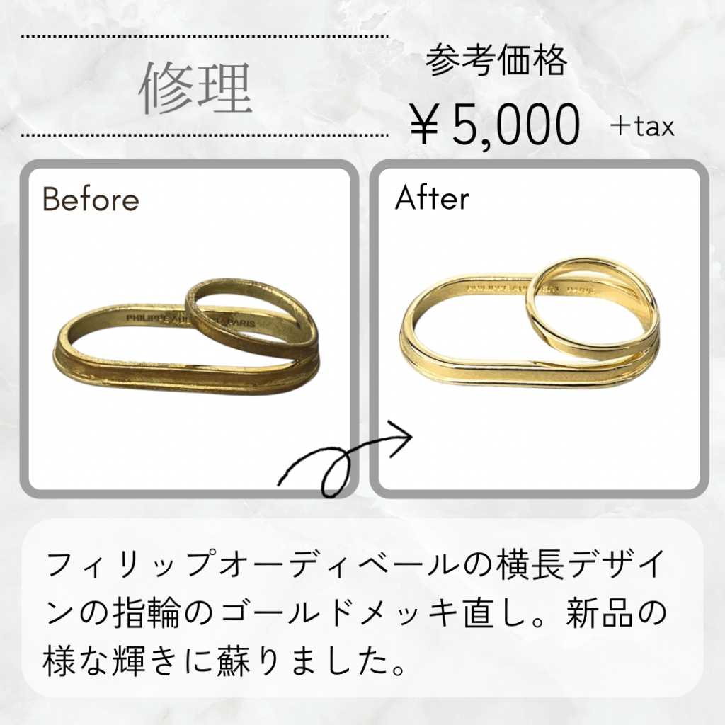 真鍮素材の指輪のメッキ加工